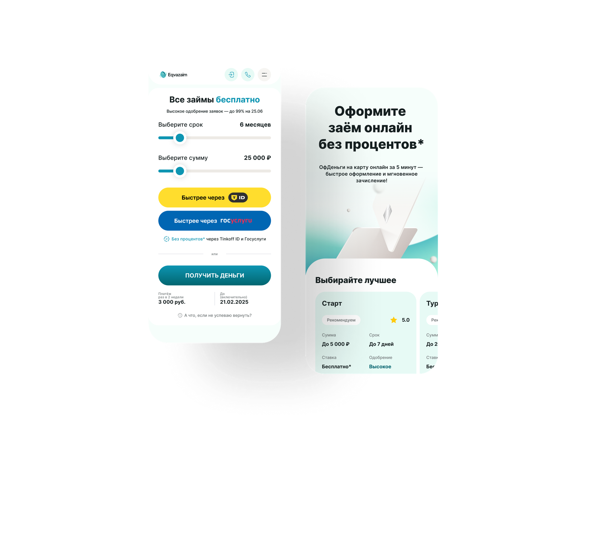 → На основе ответов система динамически предлагает допустимую сумму и срок, а не максимальные значения.